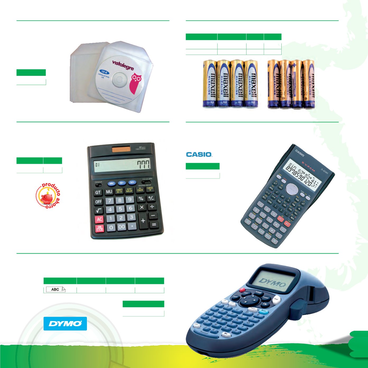calculadoras, rotuladores y pilas